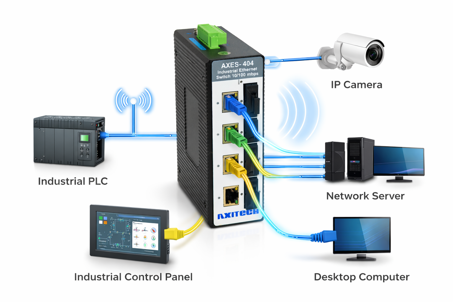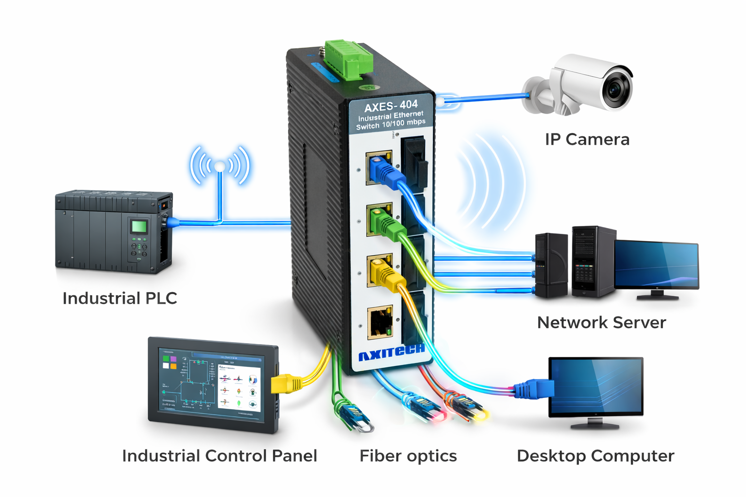 AXES-404-P – 4 Nos 10/100M POE port 802.3af/at +4 nos Fiber Port Post date March 20, 2026 No Comments on AXES-404-P – 4 Nos 10/100M POE port 802.3af/at +4 nos Fiber Port Categories: Industrial POE Switches, Industrial POE switches Unmanaged 100M Series 802.3af/at (upto 30watt/port) Overview Specifications Features Compliance Drawing Ordering Downloads Overview Specifications Features Compliance Drawing Ordering Downloads Related products AXMGS-1024P –24 Nos 10/100/1000M POE port 802.3af/at +4 no SFP(1G) Ports Read more AXMGS-1008P –8 Nos 10/100/1000M POE port 802.3af/at +2/4/8nos SFP(1G) Ports(Optional) Read more AXGS-802P –8 Nos 10/100/1000M POE port 802.3af/at +2 no SFP(1G) Ports Read more AXES-402P – 4 Nos 10/100M POE port 802.3af/at +2 nos Fiber Port Read more ← AXES-402P – 4 Nos 10/100M POE port 802.3af/at +2 nos Fiber Port → AXES-401P — 4 Nos 10/100M POE port 802.3af/at +1 no Fiber Port Leave a Reply Cancel replyYour email address will not be published. Required fields are marked *Comment * Name * Email * Website Save my name, email, and website in this browser for the next time I comment.