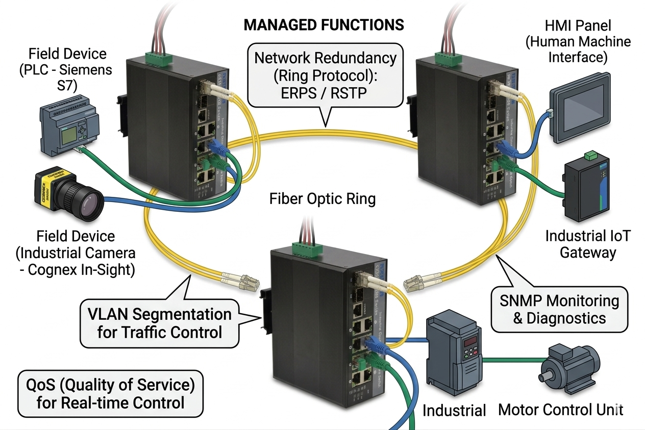 - FMCRingProtocol"AxiRing"(recoverytime<20ms),RSTP and STP for network redundancy